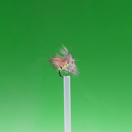 The Fluttering Caddis Grizzly is a popular fly pattern used in fly fishing for trout and other species of fish that feed on caddisflies. The fly is designed to imitate the natural movements and appearance of a caddisfly, which is an aquatic insect commonly found in rivers and streams.