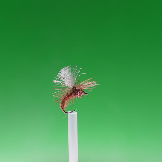 To fish the Klinkhammer fly, it is typically cast upstream and allowed to drift naturally downstream while twitching the rod tip to create movement in the fly. The fly can also be stripped in using short, sharp pulls to imitate an insect that is trying to break free from its shuck.