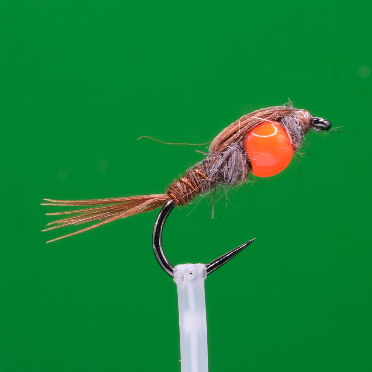 Hot Head Orange Bead Pheasant Tail to przyciągający wzrok i skuteczny wzór muchy, który łączy w sobie klasyczną nimfę ogonową bażanta z dodatkowym gorącym punktem dla dodatkowej atrakcyjności.