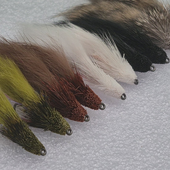 Get ready to move big trout with this set of 10 premium streamer flies, featuring hand-tied deer hair muddler zonkers in five of the most effective colors: black, brown, olive, white, and natural brown — two of each.
