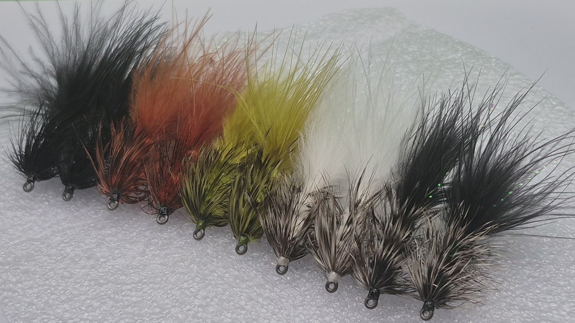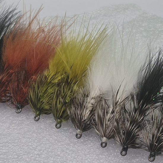 Elevate your trout fishing game with this ready-to-go streamer fly set: 10 hand-tied Grizzly Woolly Buggers, featuring two flies in each of five time-tested grizzly color variants — plain black, grizzly brown, grizzly olive, grizzly white, and grizzly black.