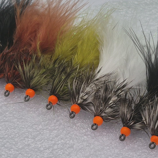 Get ready to trigger aggressive trout strikes with this set of 10 premium streamer flies, featuring hand-tied Hot Head Grizzly Woolly Buggers in five of the most effective color variations — plain black, grizzly brown, grizzly olive, grizzly white, and grizzly black — two of each.