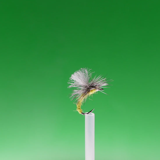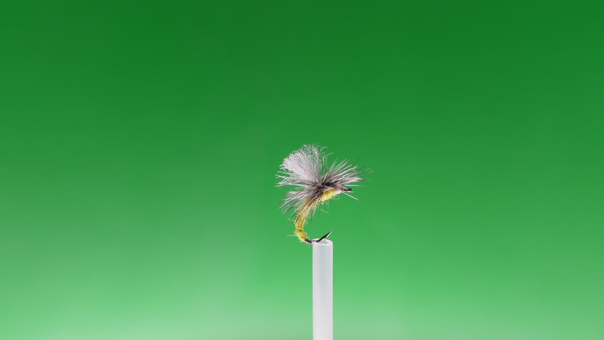 The Klinkhammer Yellow features a parachute-style hackle and a trailing shuck, which imitates the legs of an emerging mayfly. The yellow colour of the fly is also attractive to fish, especially in cloudy or murky water.