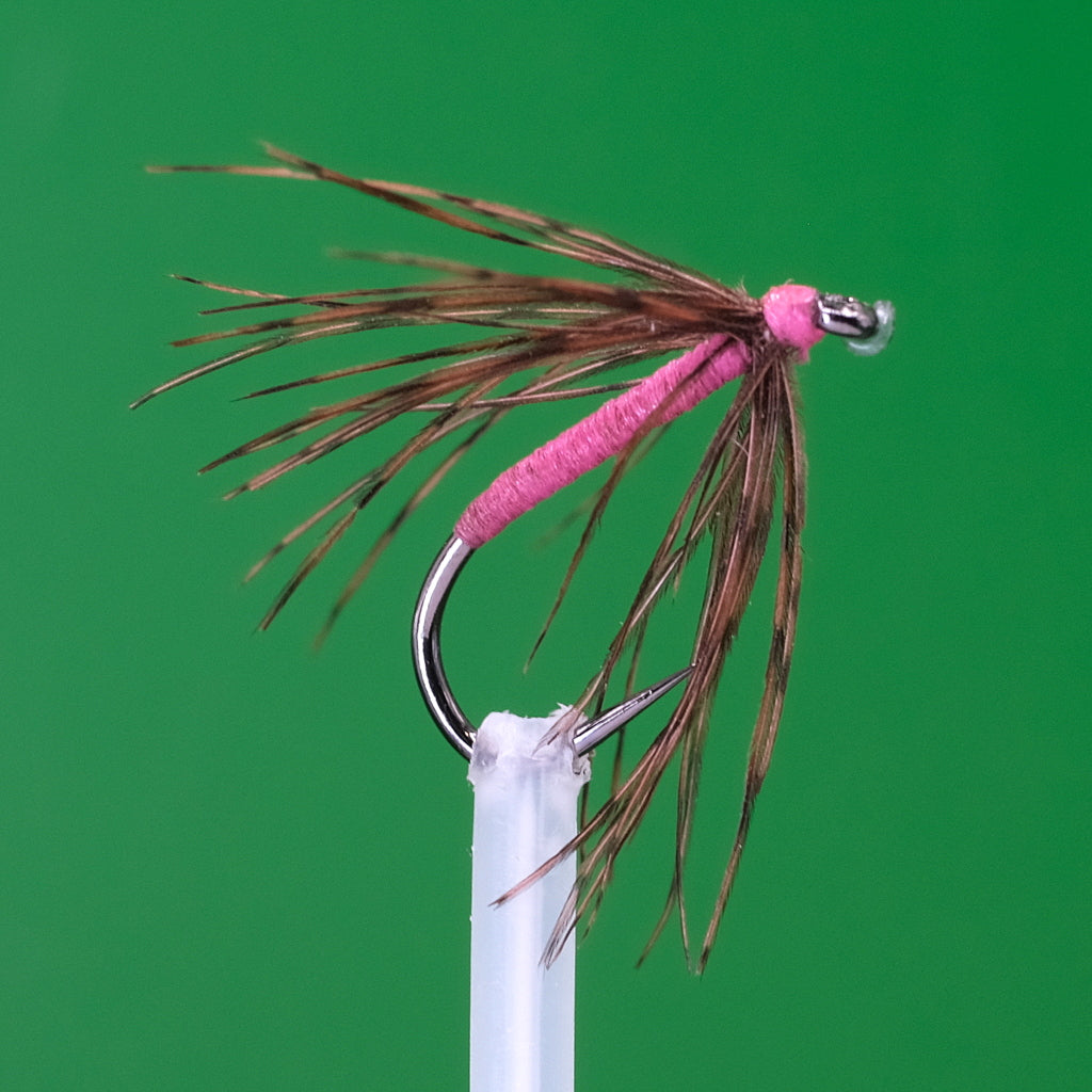 The Snipe and Pink Spider is a variation of the classic Snipe and Yellow Spider wet fly pattern. The Snipe and Pink Spider is often used in low light or slightly off-colour water conditions, where the pink thread or floss used in the fly can be more visible to fish.